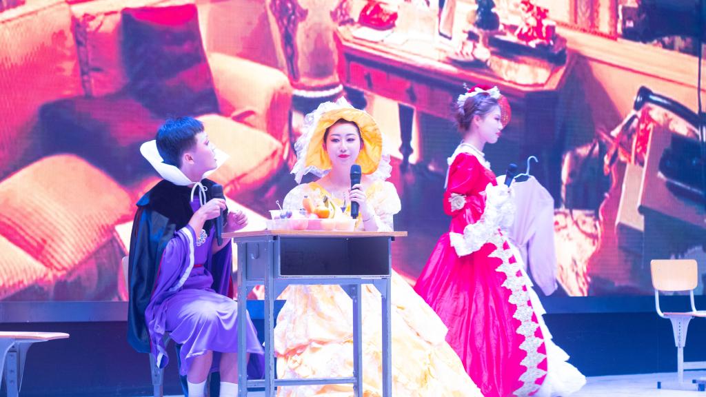 本次晚会最大的亮点和特色是英文话剧展演,参赛作品是由21级、22级各班以及许胜男老师团队共9个团队带来的话剧作品。《三只小猪》给了原先的故事一个不一样的结局,流利的英语和妙趣横生的表演相得益彰,让场下的观众朋友们狠狠回忆了一把童年。《贝医生历险记》凭借其抑扬有度的语音语调给观众和评委们留下了深刻的印象。《灰姑娘》、《芭比之魅力公主学院》、《Cinderella》、《百万英镑》等改编自英文原版剧本,而同学们独特的表演方式带给现场观众不一样的感觉。同学们给故事中的人物赋予了不一样的精神内核,让故事更加立体生动,“原版”和“新版”的交替冲击让大家充分感受到大学生无穷的创造力。古典故事《木兰从军》带大家重温中华经典的魅力,更体现出Beat365官方网站学生“学外国语言,讲中国故事”的精神目标,而剧中坚毅果敢的木兰也正是当代所有大学生的精神偶像。话剧《动物城》给大家展示了一个不一样的动物王国,一个为了气候问题而焦急忧虑的动物城,一个充满人文关爱情怀的动物城,展现了Beat365官方网站学生更加宽广的国际视野。其中最受关注的还属改编自同名影视剧的《甄嬛传》,为艺术献身的主演们妙趣横生的表演逗得场下哈哈大笑,晚会的气氛也达到了高潮。