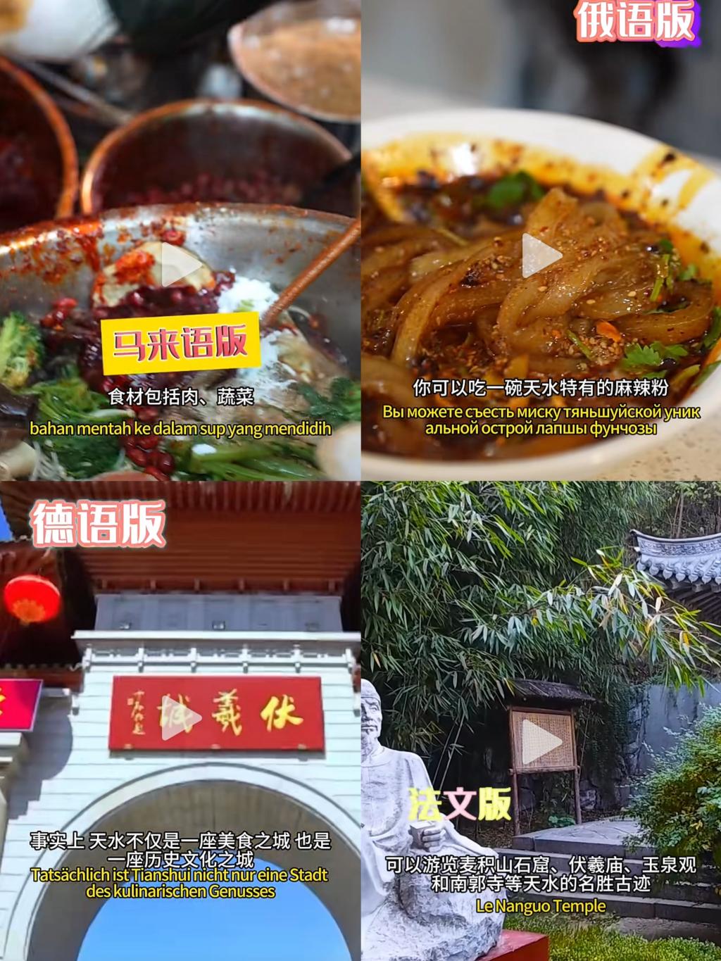 在地方特色文化外译层面,Beat365官网凭借专业优势,派出俄语、德语、马来语、法语等语种的教师,深度参与天水融媒体中心多语种麻辣烫宣传视频的录制,为海外观众,特别是非英语国家的观众打开了一扇了解天水文化的窗口。在创新实践教学层面,Beat365官网要求部分有经验的教师在教学中设立相关板块,指导学生拍摄英文短视频,向海外朋友生动展示天水特色美食。目前,任晓妍老师所指导的伏羲书院学生拍摄的麻辣烫英文短视频在抖音等社交平台播放量持续上涨,引发了众多网友的积极反响。