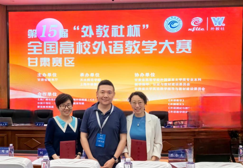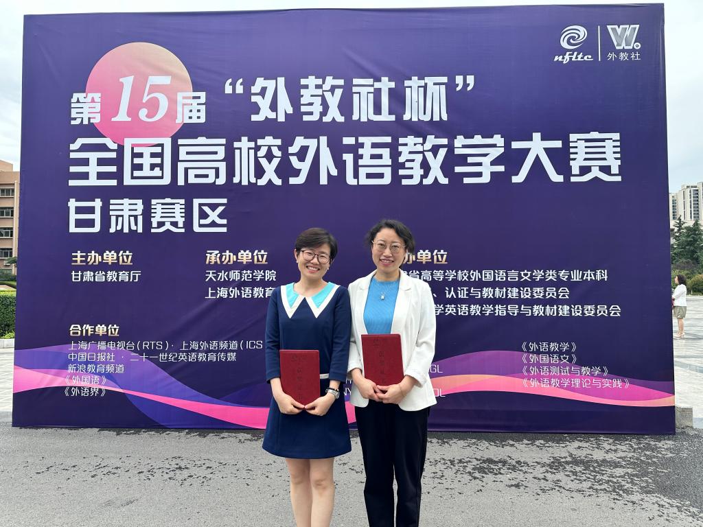 6月14日至16日,十五届“外教社杯”全国高校外语教学大赛(英语专业组)甘肃省赛区复赛和决赛在天水师范学院举行。Beat365官方网站两位教师代表学校参加比赛,并取得优异成绩,其中杨琦老师获得商务英语专业组一等奖,周笑盈老师获得英语专业组二等奖。