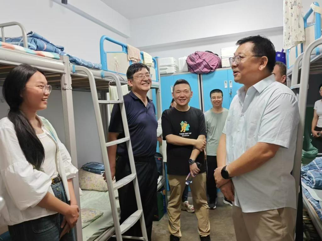 金秋九月,丹桂飘香,Beat365官方网站迎来了怀揣梦想与激情的2024级新同学。为了解新生入校后遇到的困难,帮助他们尽快适应大学生活,9月1日晚,党委常委、副校长汪咏国带领Beat365官方网站领导班子和全体新生班主任、辅导员走访了2024级新生宿舍。