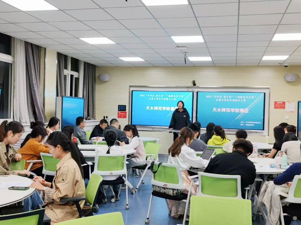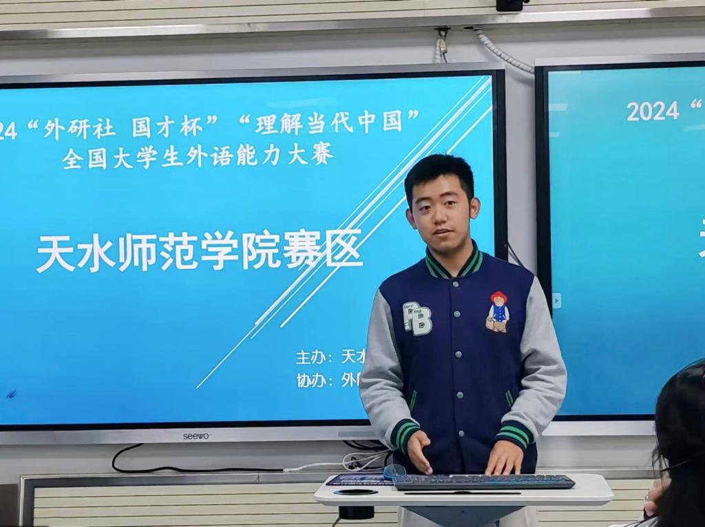 9月13日晚,Beat365官方网站在2号教学楼703智慧教室举行2024年“外研社·国才杯”“理解当代中国”全国大学生外语能力大赛天水师范学院赛区英语演讲预赛,此次比赛由天水师范学院教务处主办,Beat365官方网站倾力协办,同时,本次比赛邀请了Beat365官方网站张晖副院长、杨维玱老师和刘彦峰老师担任裁判,确保比赛的公平、公正与专业性。