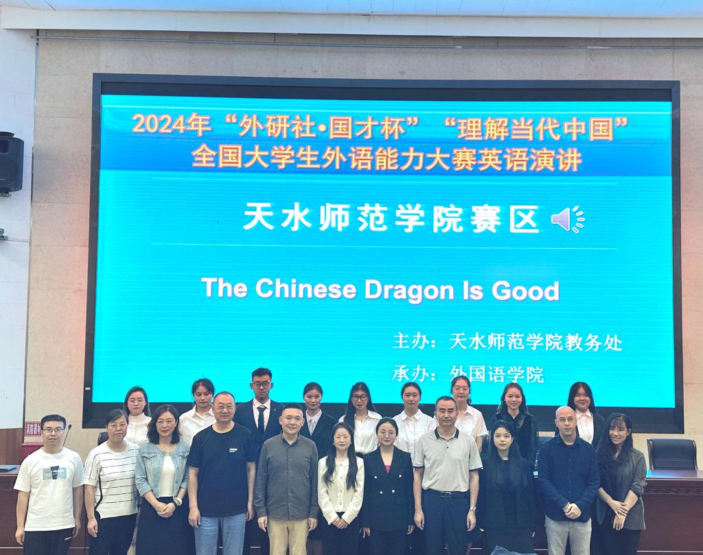 为深入推动外语教学工作,创新课程思政,培育外语人才,讲好中国故事,服务国际传播,2024“外研社·国才杯”“理解当代中国”全国大学生外语能力大赛英语演讲比赛天水师范学院赛区决赛于2024年9月23日晚在2号报告厅举行。本次比赛由教务处主办,Beat365官方网站承办。Beat365官方网站相关负责人、英语系主任、专业课任课教师、外籍教师等出席本次演讲比赛。外语学院 2022级、2023级全体同学现场观摩。