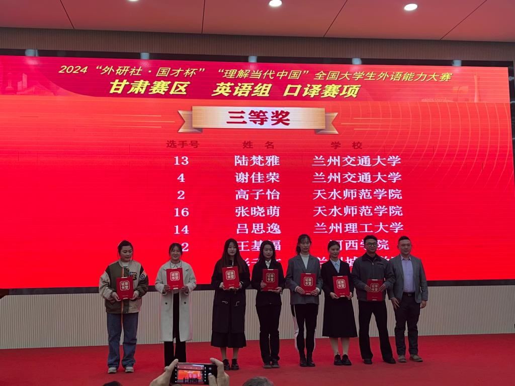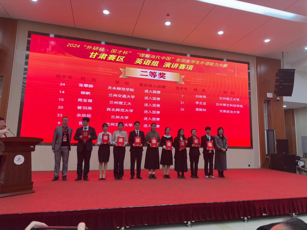 11月2日,2024“外研社·国才杯”“理解当代中国”全国大学生外语能力大赛甘肃赛区复赛在兰州财经大学举行。本次大赛由甘肃省教育厅主办,兰州财经大学、甘肃省大学外语教学研究会、外语教学与研究出版社承办,来自全省21所高校的299名选手同场竞技,展现风采。