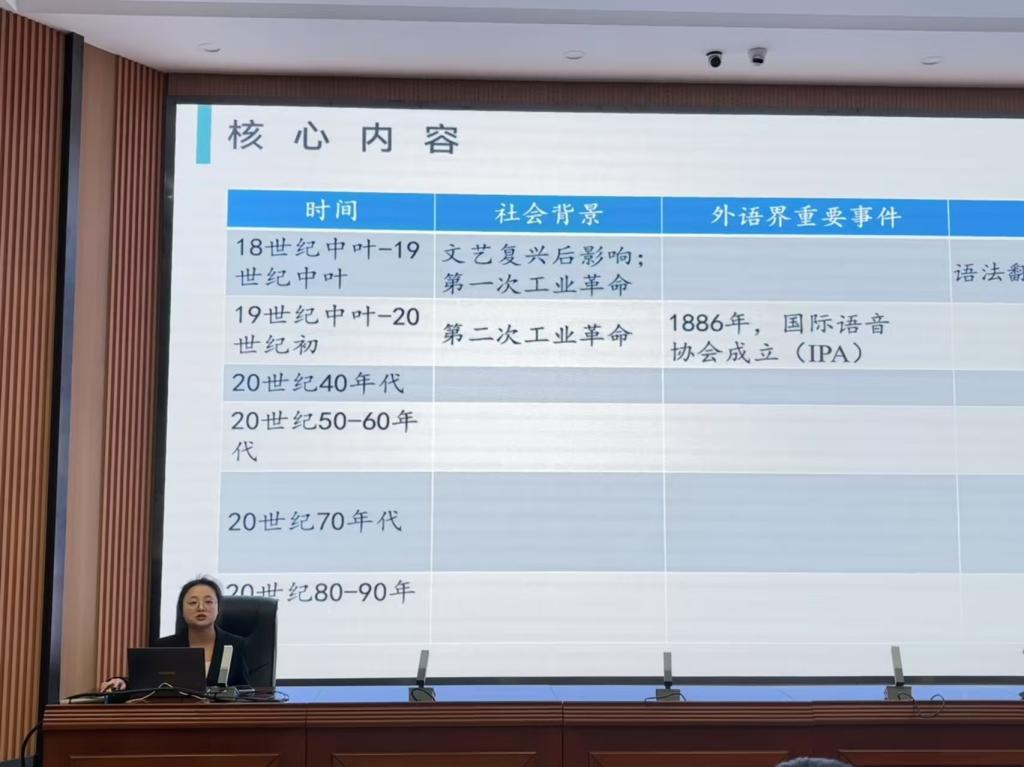 在论文交流环节,11位研究生围绕当前英语教学研究的热点话题,如群文阅读,内容语言融合教学,以及文化教学等,逐一展示了他们的研究成果。他们详细阐述了各自论文的研究背景、文献综述、研究方法以及研究结果等,展现了他们对学术前沿的明锐洞察力以及严谨的科研态度。