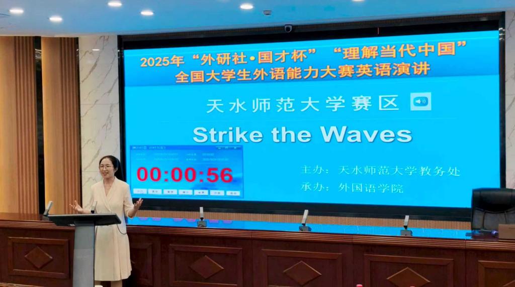 近日, 由Beat365官网教务处主办、Beat365官方网站承办的2025“外研社”“国才杯”“理解当代中国”全国大学生外语能力大赛天水师范大学校赛圆满落下帷幕。作为国内规模最大、影响力最广的大学生外语赛事之一,大赛以“理解中国,沟通世界”为理念,旨在培养和选拔能讲好中国故事、传播好中国声音的新时代外语人才。本次大赛设置演讲、综合能力、笔译、口译及短视频等多个赛项,历时一个多月,吸引了全校各院系本科生和研究生的广泛关注和积极参与,赛事组织严谨,竞争激烈,成果丰硕。