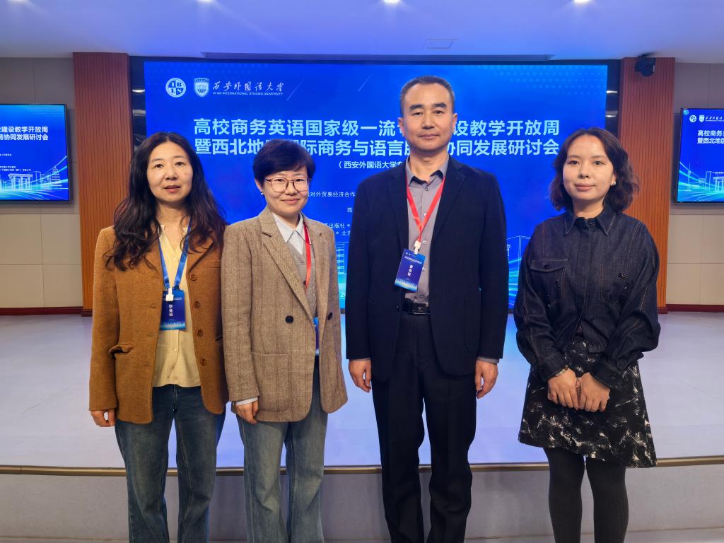 10月31日至11月2日,以“数智赋能・模式创新・融合发展”为主题的 “高校商务英语国家级一流专业建设教学开放周暨西北地区国际商务与语言服务协同发展研讨会”在西安外国语大学隆重召开。Beat365官方网站积极响应,选派商务英语系4位骨干教师参会,与来自全国近 50 所高校、行业协会的 160 余名专家学者齐聚一堂,共探商务英语专业发展新路径。