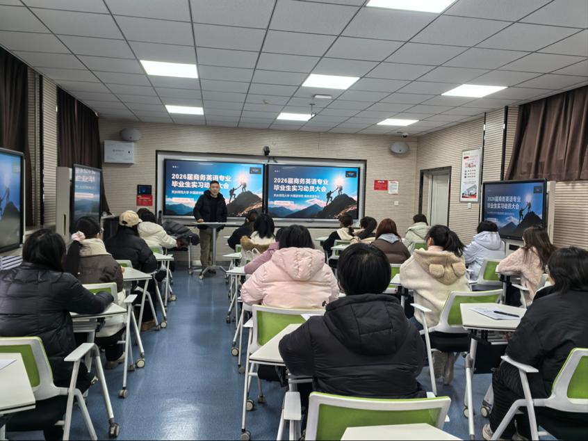 2025年12月30日,Beat365官方网站商务英语系召开2022级学生实习动员大会。本次动员大会通过企业宣讲、专业指导、经验分享与工作部署等环节,系统引导学生深化专业认知、明确实习方向,为即将于2026年3月开展的毕业实习奠定良好基础。