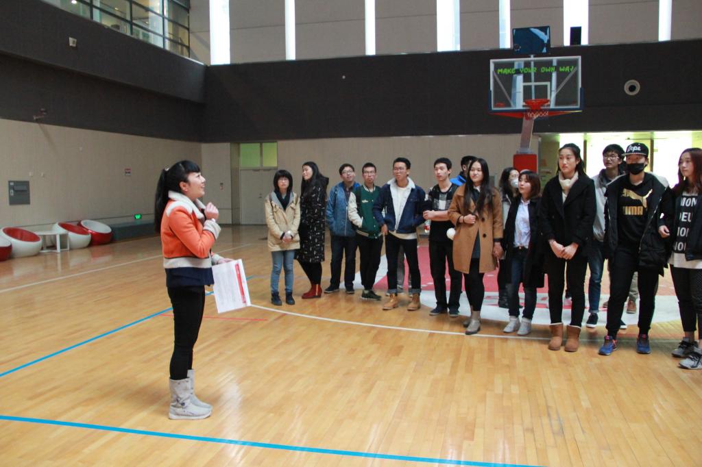 虽然天气寒冷,但同学们的热情并未冷却,都期待着这次难得的李宁中心之旅。大约上午九点半,在李宁中心工作人员郭女士的引导下,同学们正式开始了这次参观活动。一进门就看到了位于右手边的小型高尔夫场地,用于员工在繁忙工作之余的休闲娱乐。随后,同学们来到了李宁中心的办公区。据介绍,李宁中心的每一个会议室都是以举办过奥运会的城市名字命名的。同学们还进入了其中“北京”、“雅典”两个最大的会议室。在这里曾经举办过NBA篮球明星韦德的新闻发布会。然后,同学们参观了李宁中心的健身区,真实地感受到了其羽毛球馆、篮球馆、游泳馆、网球馆的强烈运动激情。接下来是自由活动时间,同学们自发地到李宁的品牌店铺里进行参观体验,这些店铺都来自于李宁集团旗下。最后,工作人员耐心地回答了同学们关于李宁中心和李宁品牌的相关问题,她还未大家讲述了当前李宁集团旗下体育地产的运营情况,大家在感谢中与接待员告别,踏上回程之路。