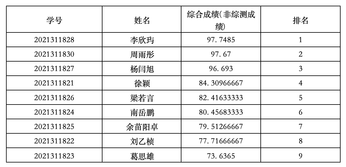 注:学分加权平均分指教务系统中前三学年正考成绩学分加权平均分;素质评价成绩为学生前三学年综合素质评价成绩平均分;如某班符合条件人数不足,则名额将调整至其他教学班。