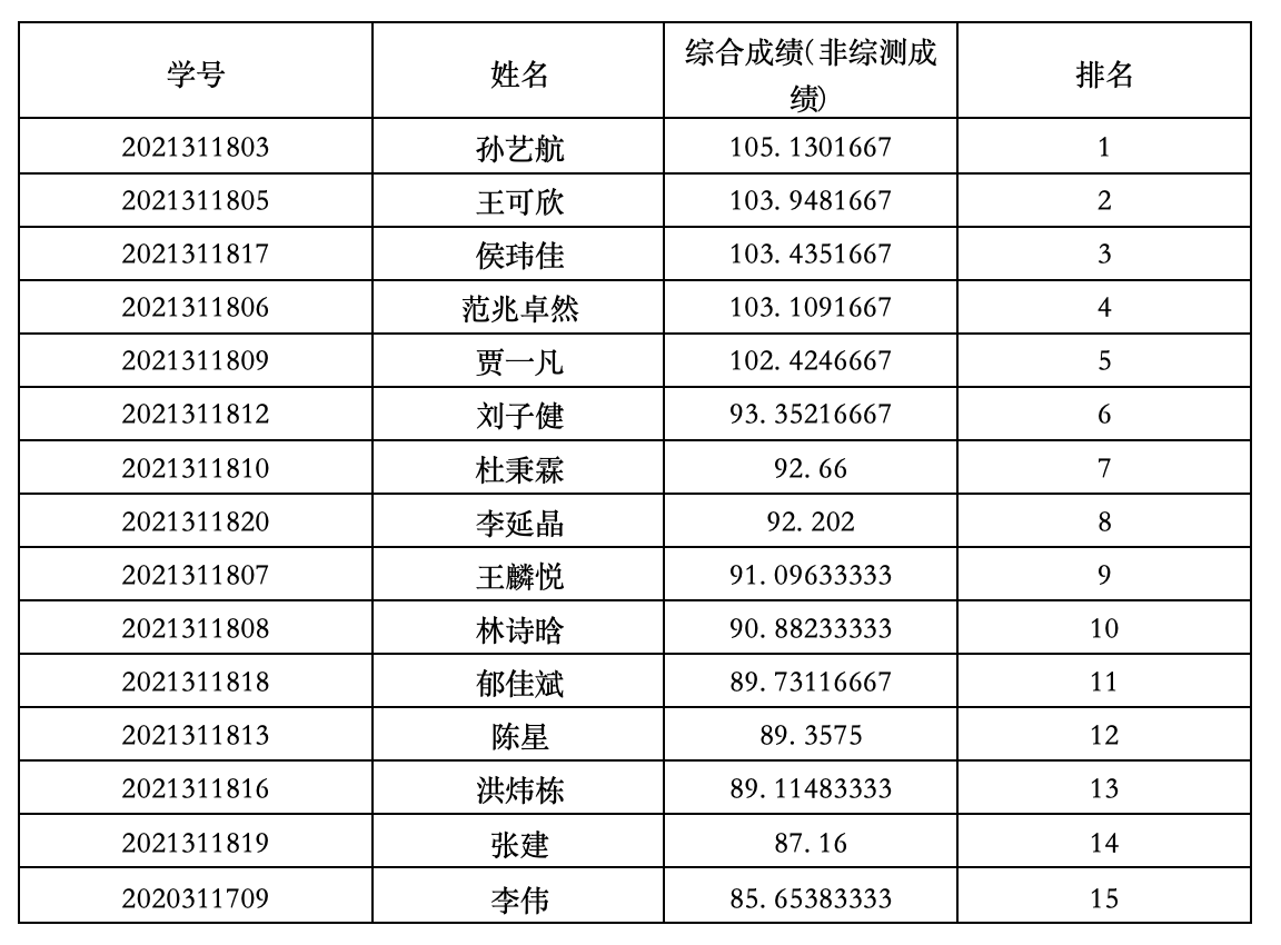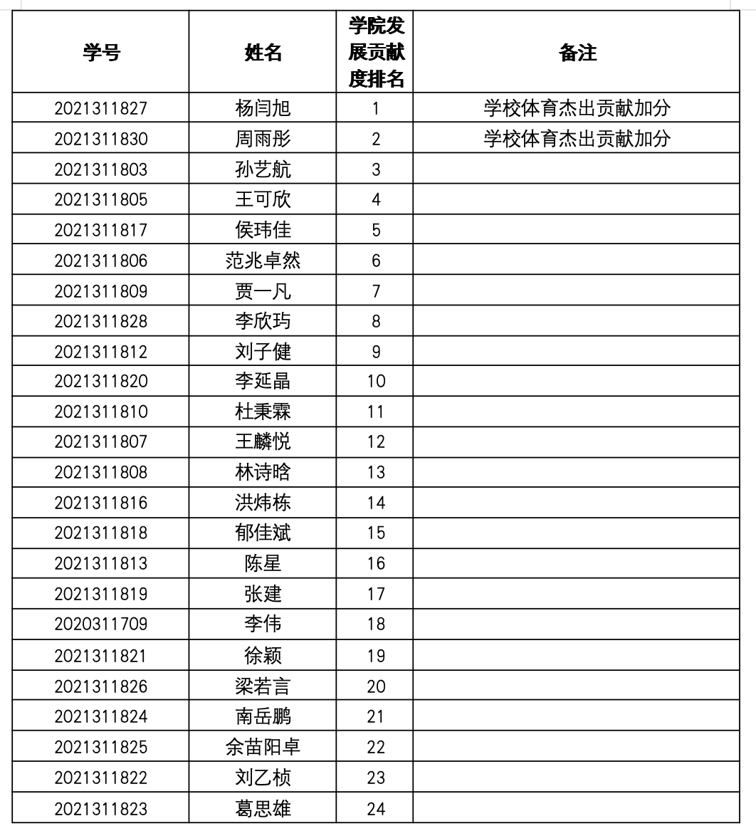 2、学院杰出贡献推免名额(2个),在全院范围内根据学生在校期间为学院发展建设的贡献度进行排序,不区分班级。综合排名得分计算公式如下: