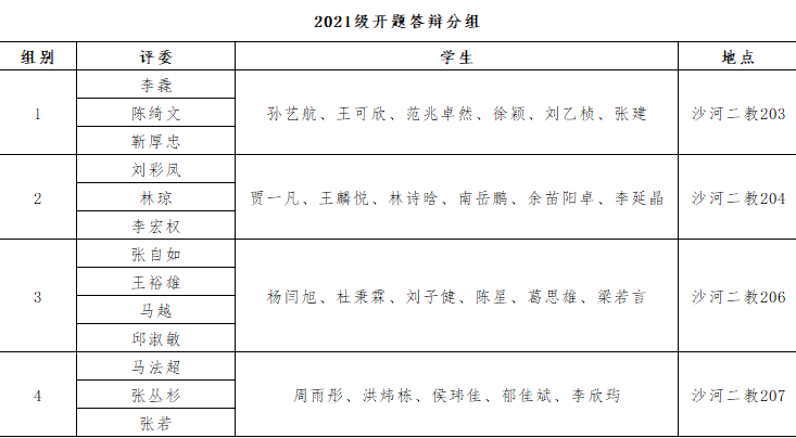 2021级本科生毕业论文开题答辩分组