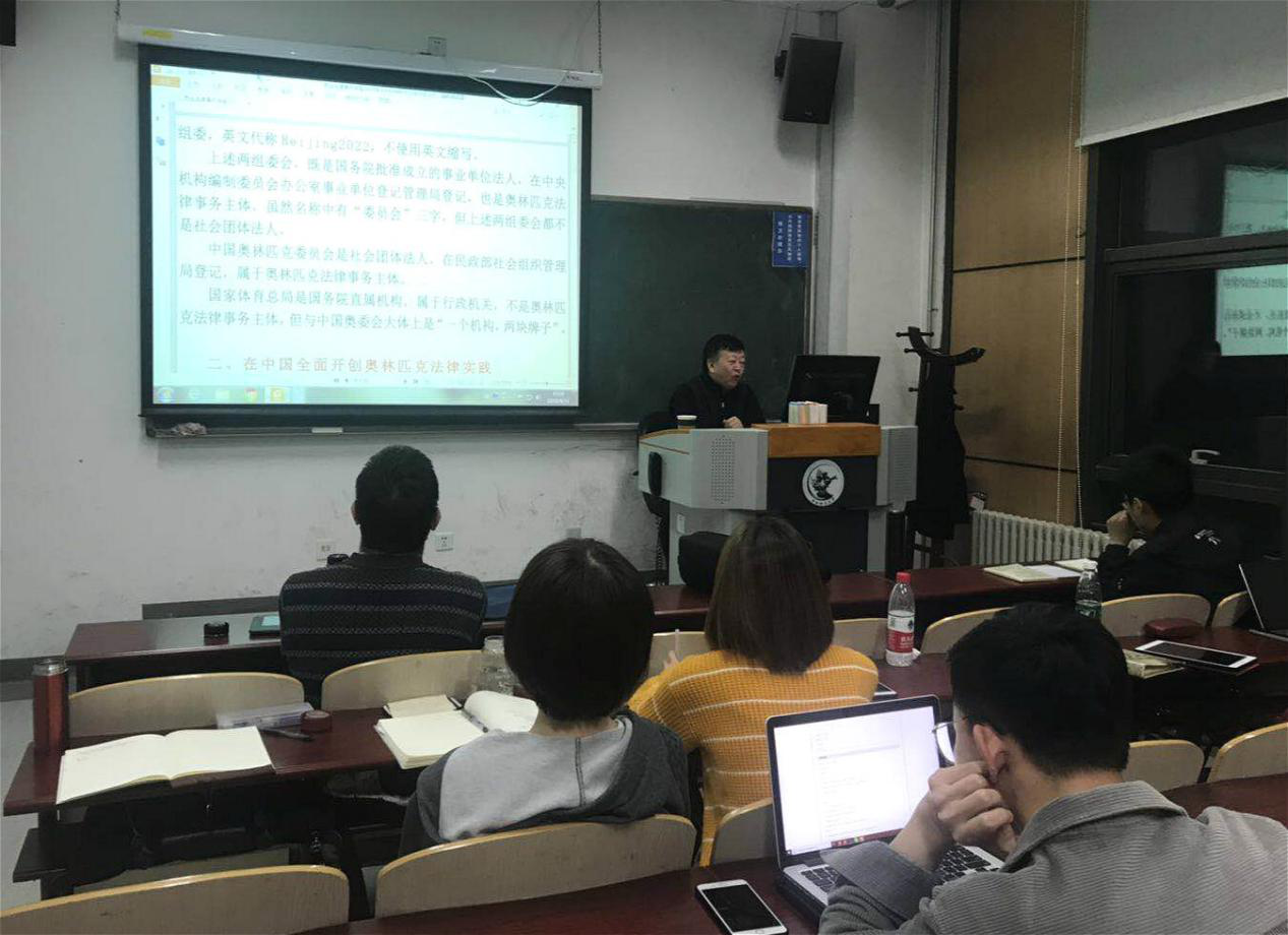 4月15日晚上19:00,新葡萄官网研究生专业课程《体育政策与法规问题研究》课堂嘉宾讲学支持计划讲座第二场在沙河校区东区主教301举行。中国体育法学研究会会长,北京市法学会体育法学与奥林匹克法律事务研究会会长、中国国际经济贸易仲裁委员会仲裁员、中国政法大学硕士生兼职导师刘岩,受邀为新葡萄官网2018级研究生做了“北京奥运会、冬奥会的法律实践”为主题的学术讲座。