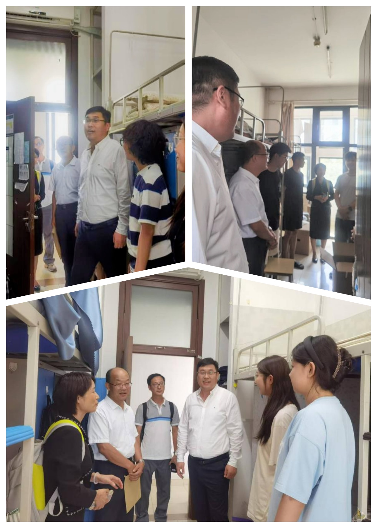下午,学院党委书记宋立岩、院长张本家、副院长张丛杉、副书记陈绮文、研究生辅导员郭佳佳来到学生宿舍楼慰问看望新生,了解新生入学的有关问题,提醒新生注意宿舍安全,并鼓励大家以最好的精神面貌迎接研究生的学习和生活。