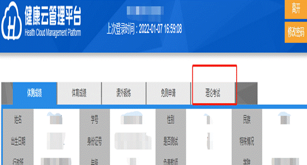 6、考试网址:http://10.13.7.220(务必使用IE、谷歌或火狐浏览器)或通过中央财经大学校园门户官网,点击页面右下角“体育与体测成绩系统”进入登陆页面,如下图: