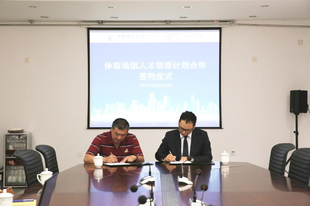 9月22日13点30分,新葡萄官网与中馆体育关于“体育场馆人才培养计划”的合作签约仪式在我校沙河校区1号楼105会议室举行,双方围绕“体育场馆人才培养”正式签署合作协议,充分发挥我校雄厚的师资力量和中馆体育的专业场馆运营资源。出席本次活动的嘉宾有新葡萄官网amg院长高涵教授、学院党委书记林琼教授、中馆体育创始人朱林祥先生、中馆体育北京区运营负责人王婷女士等。