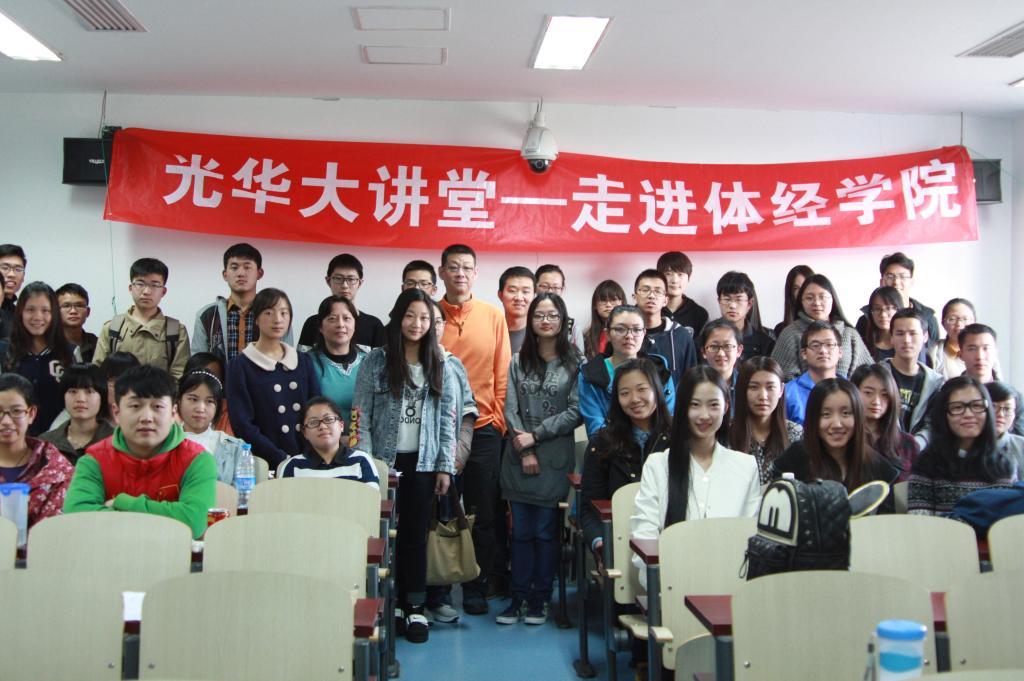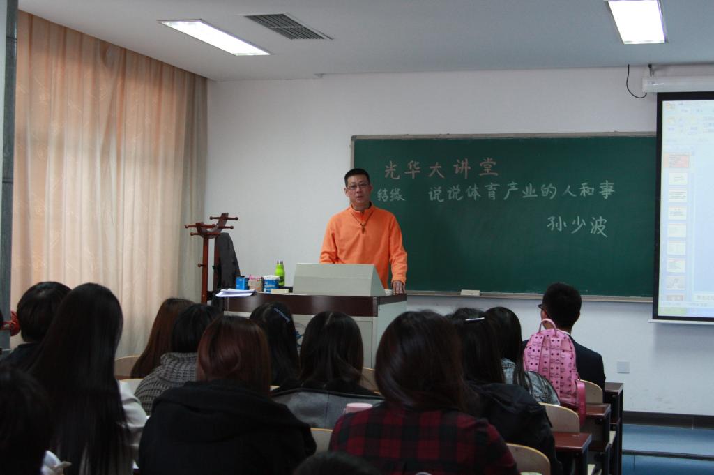 4月13日下午15:30,新葡萄官网在沙河西区505举办了“聚焦体育,展望未来”系列讲座,主题为“结缘——说说中国体育产业的人和事”。本次讲座新葡萄官网德育示范基地“健康加油站”和中国光华科技基金会共同举办,讲座邀请了山西体育职业学院高级教练员、山西省社会体育辅导员培训讲师孙少波老师。孙老师曾任山西省手球队总教练、国家女子青年队教练,培养的大批优秀选手代表国家参加奥运会等世界比赛,出版过包括《运动训练学》在内的著作并发表大量论文,从事体育产业管理工作近5年。到场的嘉宾还有新葡萄官网amg党总支书记林琼老师以及张振磊老师、王裕雄老师,新葡萄官网大一、大二、大三的同学也参加了讲座。