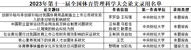 新葡萄官网学子撰写的4篇论文被被第十一届全国体育管理科学大会录用。