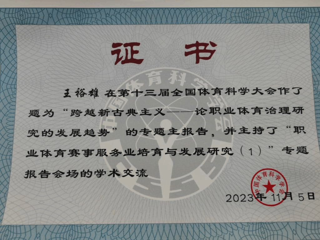 新葡萄官网王裕雄教授作为体育产业分会委员应邀参会,并分别在天津大学“职业体育赛事服务业培育与发展研究”、“体育产业高质量发展与体育强国建设”两个专题分会场以“在中国特色体育产业发展实践中发展体育经济学”、“跨越新古典主义——论职业体育治理研究的发展趋势”为题作主旨报告,并担任了上述专题分会场的主持人。
