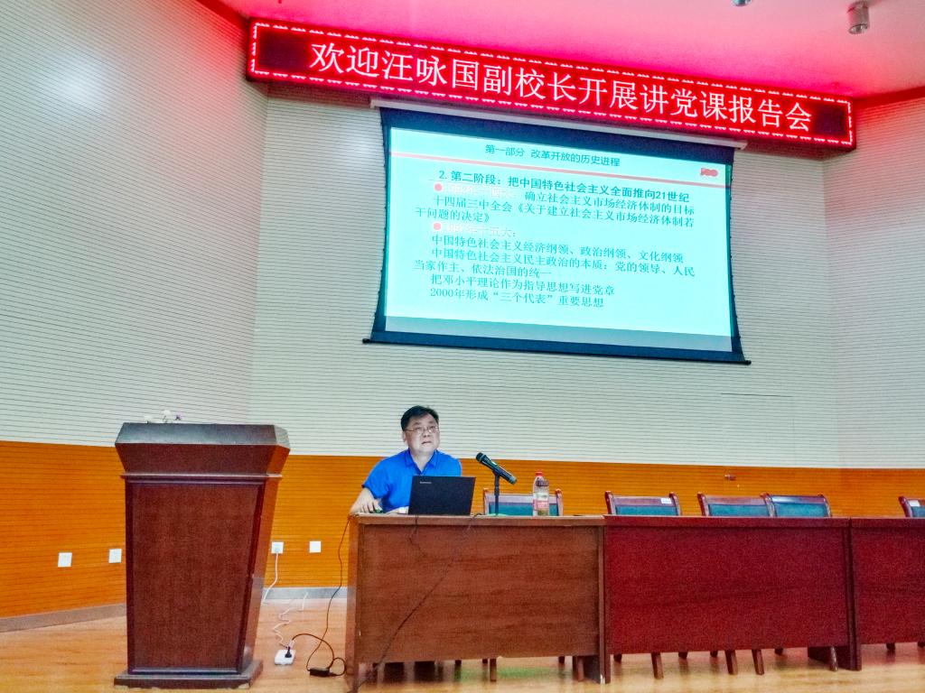 在喜迎中国共产党百年华诞之际,汪咏国副校长于6月24日晚在三号报告厅为Beat365官方网站党总支师生党员、入党积极分子100余人讲了题为《改革开放新时期历史》的主题党课。