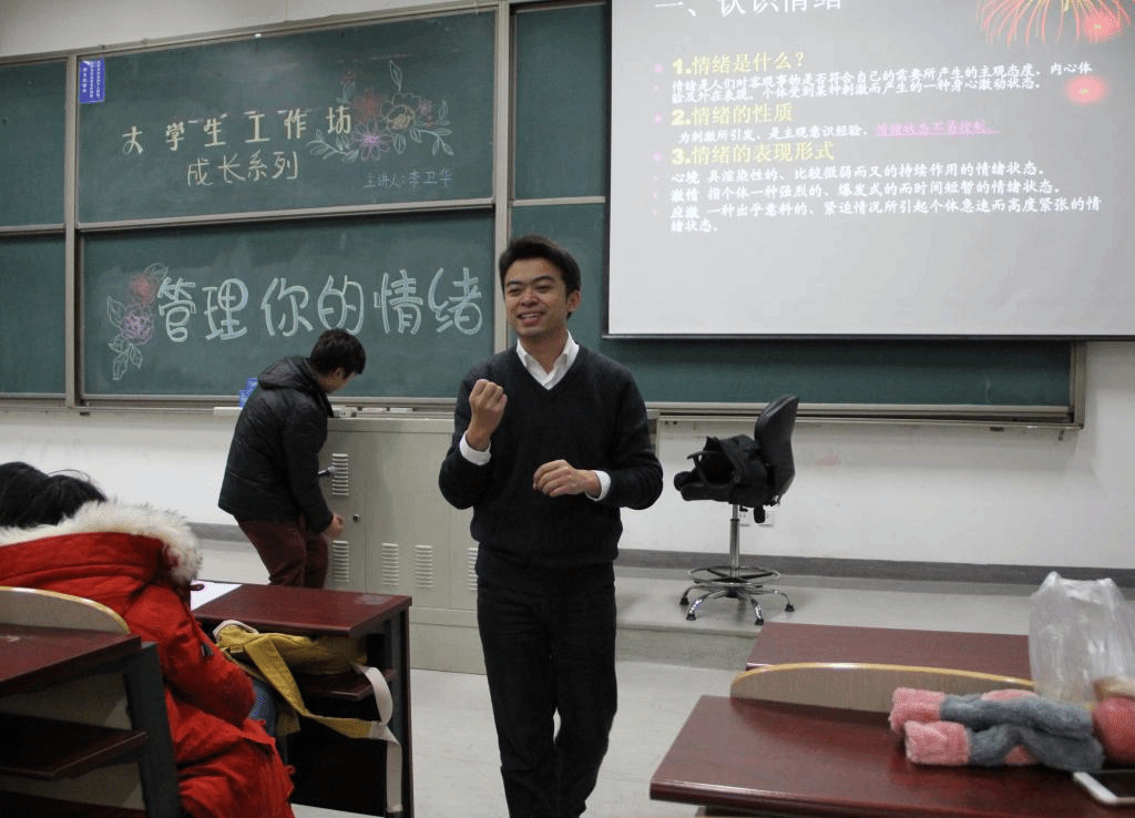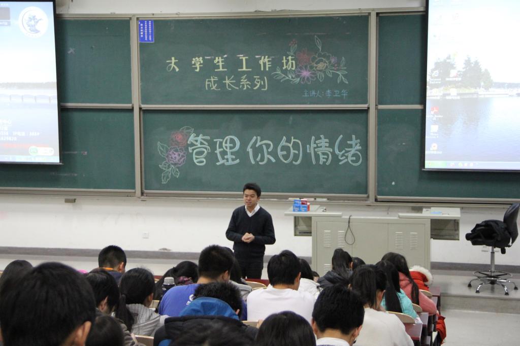 11月20日晚18:30,由学生处大学生心理素质教育与咨询中心主办,新葡萄官网amg与社会发展学院联合承办的大学生成长系列工作坊之“管理你的情绪”讲座在沙河校区东区主教学楼107教室举行,本次讲座邀请到北京航空航天大学心理咨询中心专职教师、国家二级心理咨询师李卫华担任主讲人,两个学院沙河校区全体学生参与了讲座。