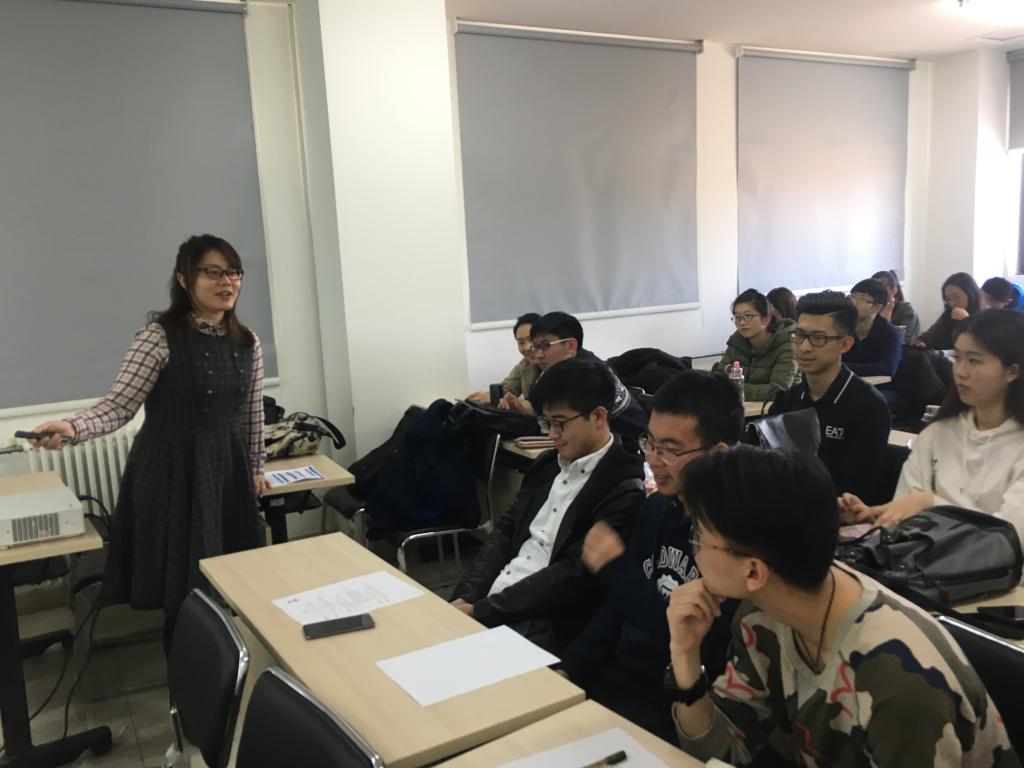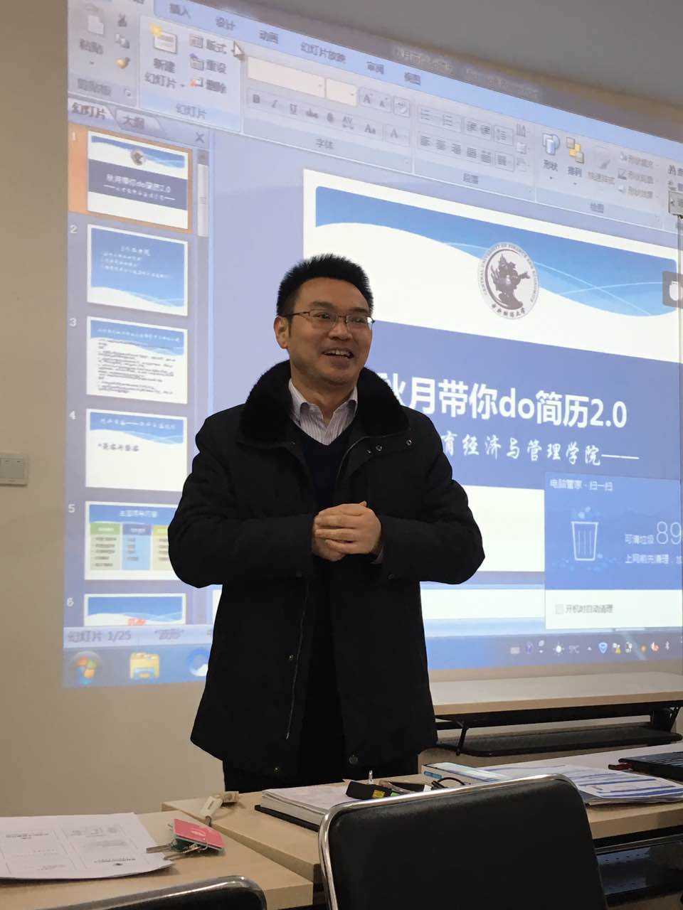 接下来,李秋月老师正式开始介绍如何制作简历。她率先向同学们提出了三个问题:为什么要设计简历,简历是给谁看的,看你简历的人通过什么渠道看到?她指出,职业生涯规划的目的是让同学们探索自我的兴趣、性格、技能、价值观以及探索与自己匹配的工作岗位,在准备求职前要了解企业信息,在简历中英突出应聘岗位需要的技能。随后,她重点强调了简历必须要突出的职业技能,包括专业知识技能、可迁移技能及自我管理技能。在自我介绍的板块中,她让同学们用3-5个名词概括所学习过的专业理论知识、动词描述所能做的事以及形容词或者副词描述自己的特质。