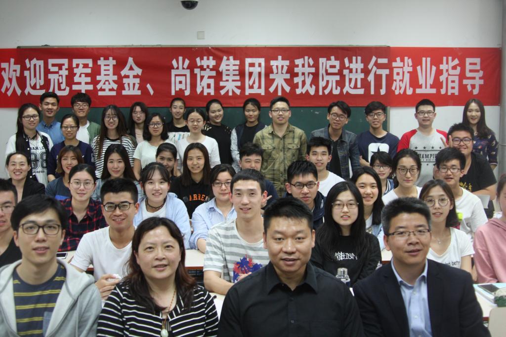 5月4日恰逢五四青年节,冠军基金携手尚诺集团再次莅临我校沙河校区,为新葡萄官网大二大三的各位同学进行职场人才需求及求职技巧讲座。上诺集团投资事业部人力资源负责人、万桥优才高级合伙人郭云深、冠军基金执行秘书长孙小峰、冠军基金项目官员郑淑兰。新葡萄官网党委书记林琼出席了本次活动,代表体经学院对他们表示欢迎与感谢。