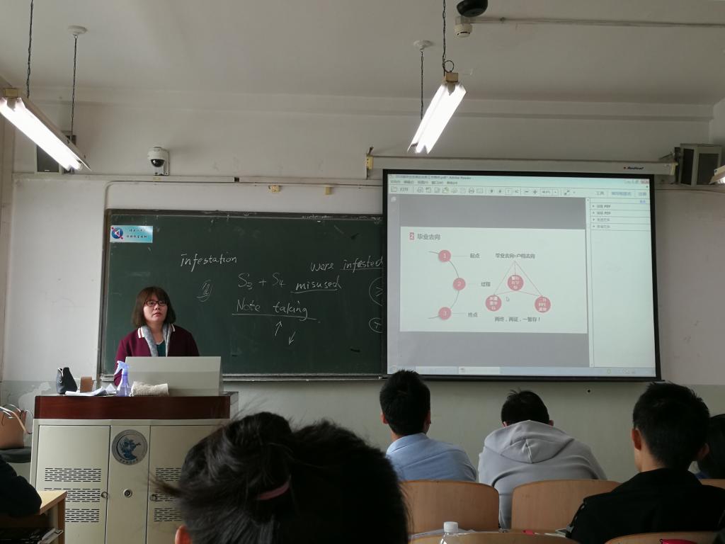 在班会的第三部分,她向大家介绍了就业信息系统的业务办理流程。首先为大家介绍了毕业生信息维护的流程,介绍了学生就业指导中心内全新的系统,并通过多媒体演示告诉了大家维护信息的具体方法。之后,老师把就业推荐表发给同学们,在向大家强调了就业推荐表的重要性后,为大家详细介绍了表中应该填写的内容,以及注意事项。最后,李老师介绍了毕业生三方协议的签署流程,申请三方协议的方法,以及这一过程中的注意事项,并强调了有关三方协议违约的问题,分别介绍了三方未盖章更替和三方已盖章更替两种情况,并倡议大家诚信就业。最后,老师祝大家都取得心仪的工作或考入心仪的学校。