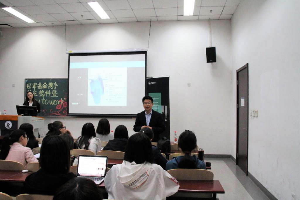 孙小峰秘书长代表冠军基金上台讲话,他首先介绍冠军基金是由冬奥冠军、前国际奥委会委员杨扬携手中国红十字基金会共同发起设立,旨在为退役运动员提供教育和生活技能培训并推荐实习岗位,同时为青少年体育教育活动提供服务。他表示冠军基金愿意为退役运动员在求职就业过程中提供各种帮助,也在过去指导和帮助过新葡萄官网的毕业生,在座的退役运动员同学若求职遇到困难可以随时联系他们。他还提到外企德科FESCO Adecco是冠军基金的合作伙伴,也是中国人力资源行业最具品牌价值的企业,他们的网络遍布全国,可以为同学们提供更多的机会。讲座结束后,到场的三位嘉宾纷纷与同学们交流沟通,耐心解答了提出疑惑和问题。