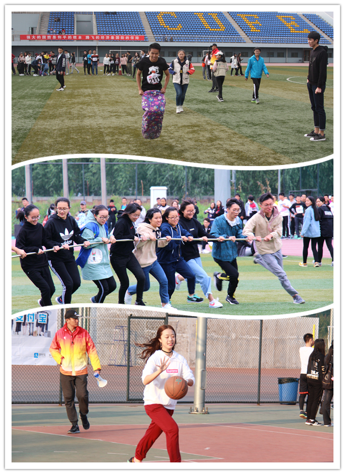 为了让更多的同学参与到运动会之中,此次运动会分为了两大类,即竞技类项目和趣味类项目。竞技类项目的比赛总是充满着观赏性:一百米的冲刺如利剑刺破苍穹;一千米的坚持告诉我们不能放弃;跳高的少年腾空跃起,留给我们灿烂的背影;实心球以一道完美的抛物线划过上空。运动健儿们在赛场上不断拼搏,奋勇直追,勇敢的超越自我;场下同学为他们的胜利和惜败同样喝彩。本着友谊第一,比赛第二的原则,在今天的运动场上,他们构成了最靓丽的一道风景线。与此同时,一个个激烈有趣的趣味性项目也正如火如荼地进行着。绑腿跳、旋风跑、袋鼠跳、篮球运球接力和投篮接力,一个比一个刺激,一个比一个热闹。相比竞技类项目激烈的竞争,趣味性项目则充满了团结与协作的乐趣。一次次绑腿跳的携手共进,一次次投篮接力的加油呐喊,都加深了同学们之间友谊,增进了学院的凝聚力。