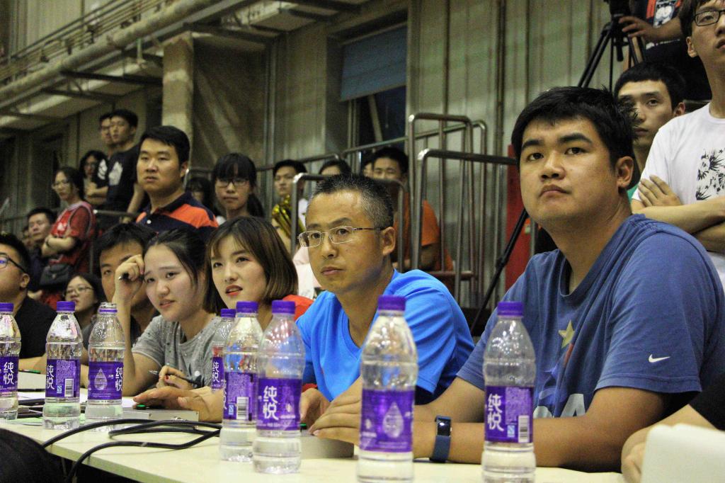 为保障正常的教育教学,同时兼顾比赛的顺利进行,比赛在每周周一、周四晚上6:30有序进行,赛程持续周期较长。每单场比赛均配备3名专业裁判员,2名场上裁判来自于体经学院公共体育课教学部专业教师,1名计时裁判来自于体经学院办公室老师,“哨如雷,眼如电”,虽为非正常工作时间,但裁判员老师用高水平的吹罚带给大家高水平的比赛。单场比赛还配备了4名志愿者进行计分和赛场秩序维护等工作。尽管经常因为比赛耽误午饭、晚饭,但他们毫无怨言,默默地用行动保证了比赛的顺利进行。