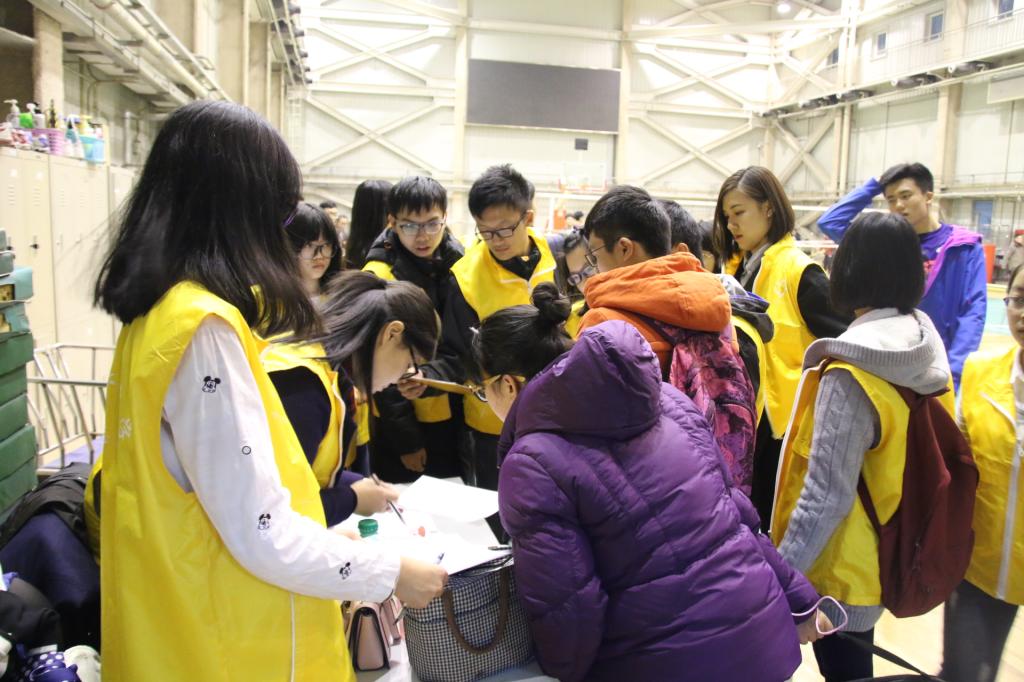 晚上六点半,赛事准备工作有条不紊展开,新葡萄官网学生会项目部成员及志愿者同学们早已就位,部分参赛队员陆续进场热身,观众依次有序入场。