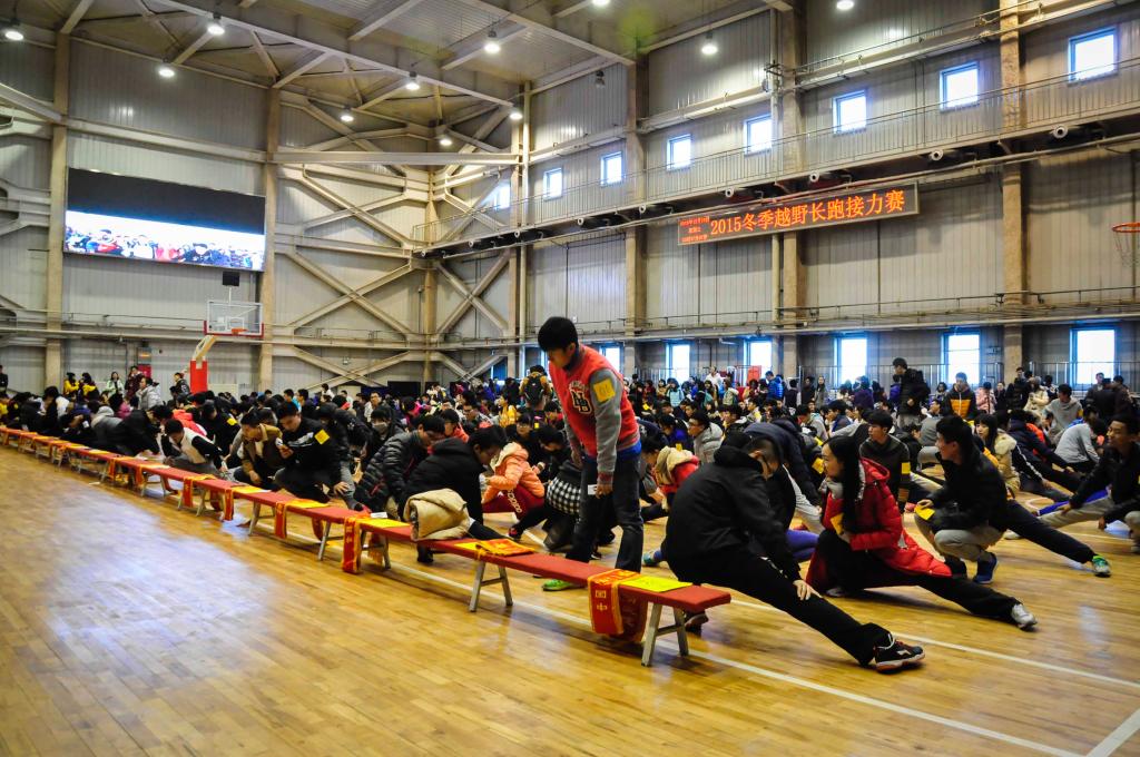 下午一点半,朝气蓬勃的运动员们来到沙河校区东区体育馆内,在指导老师的带领下,进行了冬季锻炼前十分重要的热身与准备活动,并了解了比赛规则、赛道概况以及比赛流程。在准备工作就绪后,随着裁判长的一声哨响,各个学院第一棒的同学出发,本次比赛也正式拉开了帷幕。在比赛的初始阶段,运动员之间的竞争尤为激烈。即便是在刺骨的寒风中,运动员们也个个奋勇争先、竭尽全力。他们展现出的良好的精神面貌给在场观众留下了深刻的印象。在比赛中,接力棒的角色是由写有学院名字的绶带来承担的,一条条绶带成为了比赛中一道亮丽的风景线,它们不单单是连接两棒选手的中介,也承担着同学们的集体荣誉感。