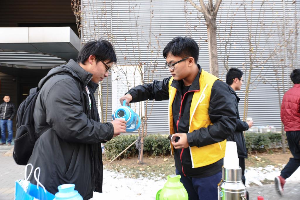 此外,整个比赛过程中,在温度接近零下的室外,志愿者们依然尽职尽责地完成了他们的工作,保证着比赛的有序进行。场下来自各个学院的同学也贴心地为选手准备了热水、外套和补充热量的食物,并在比赛途中为选手加油打气。