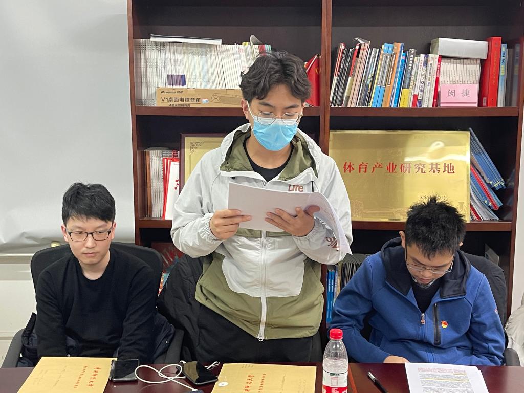 接下来,会议就廖鑫源、刘奕轩和张伟捷三名发展对象转为预备党员的问题进行了研究讨论。三名发展对象依次宣读了入党志愿书,入党介绍人陈逸洲、杜文竹、李凌晨、刘滨鸿四位同志对这三位同志的情况向支部进行了介绍。与会正式党员通过投票形式对三名发展对象的发展问题进行了表决。根据投票结果,支部同意与会三位发展对象转为预备党员。