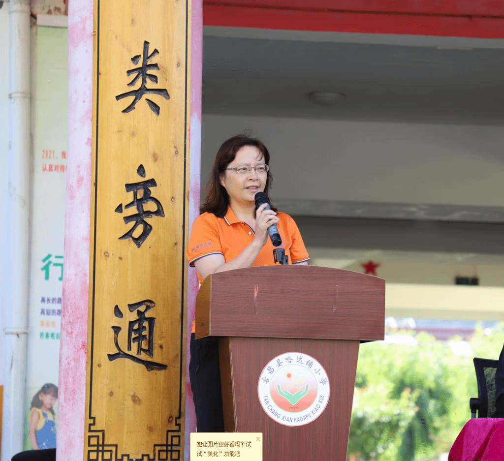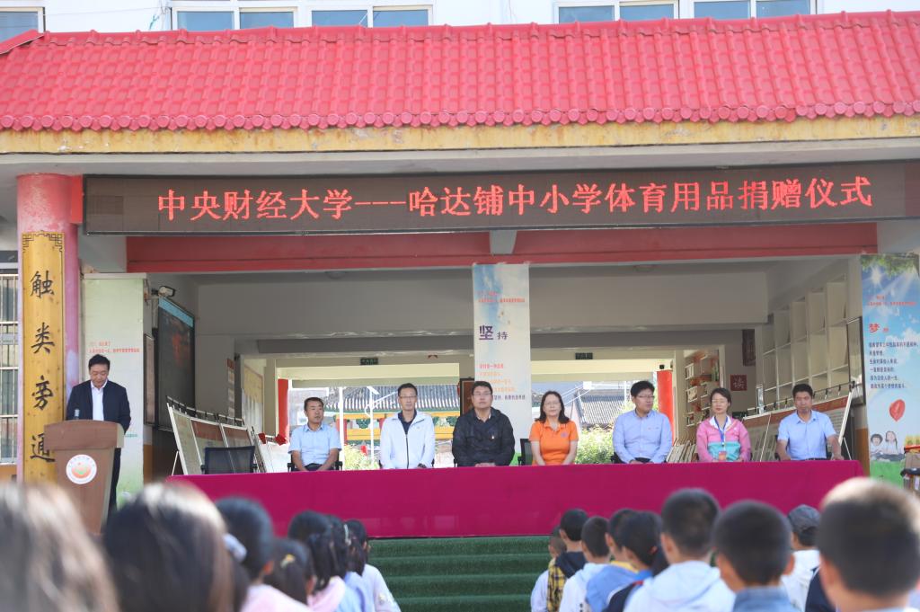 党总支书记林琼代表学院致辞。她表示此次来到宕昌县一是为了是开展党史学习教育,因为哈达铺拥有丰富的红色资源,所以组织了此次党史学习教育培训班。二是响应乡村振兴计划,来到宕昌县进行考察调研,希望通过考察调研拓宽思路,探索更多的方式为未来更好地帮助哈达铺中小学,助力乡村振兴做出更多的贡献。她强调“捐资助学”一直是中华民族的优秀传统,本次捐赠体育用品是我们学院以及调研团队的一份心意,既是贯彻体育强国战略,也发挥新葡萄官网特色,旨在支持哈达铺中小学生的体育教育教学,让孩子们锻炼出强健的体魄。