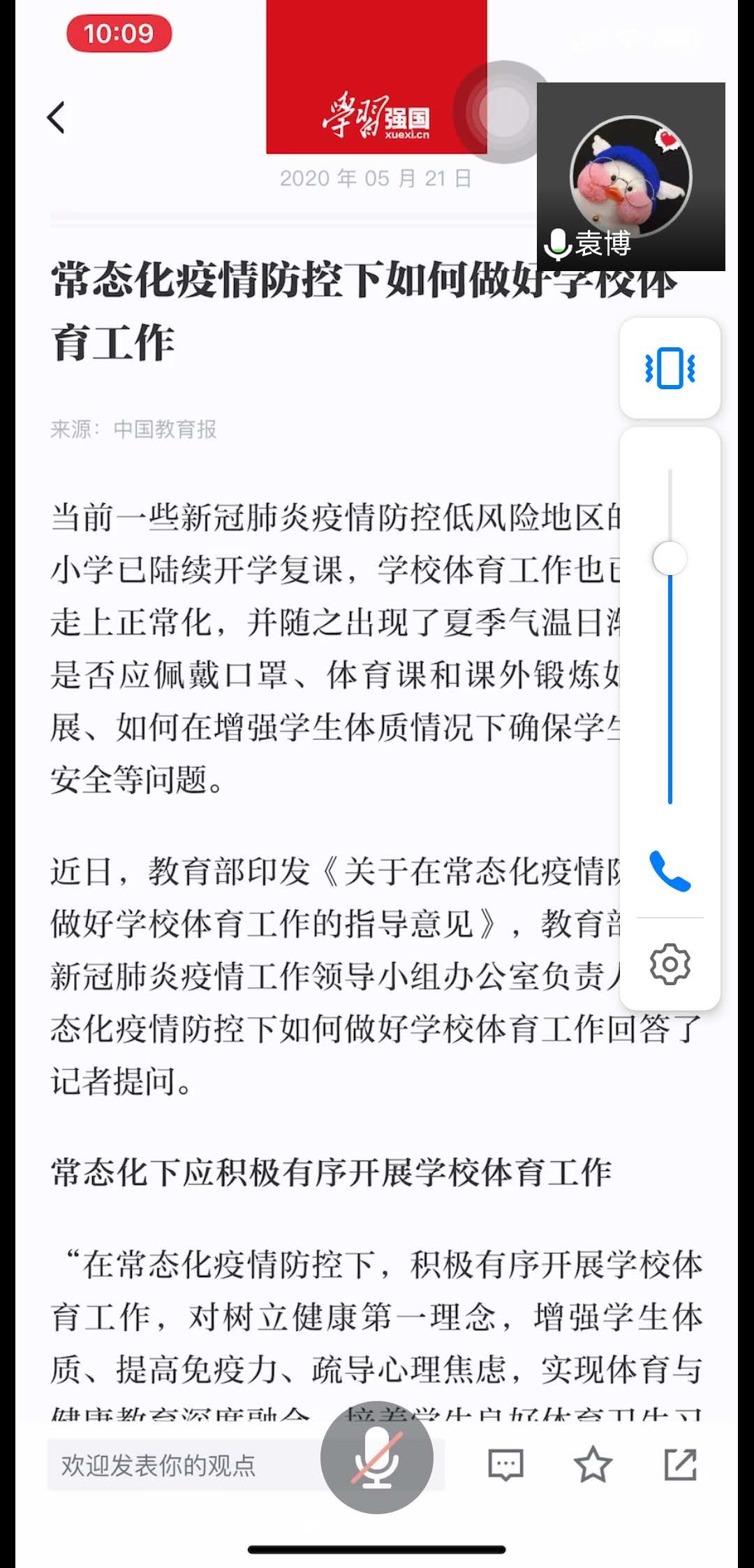 7月23日上午10点,公体教工党支部开展了《常态化疫情防控下如何做好学校体育工作》主题微党课,本次活动分为了两个部分,第一个部分由党支部副书记袁博同志进行讲授和传达教育部的相关精神,并对老师们的业务能力和知识储备提出了要求。第二部分由支部书记杨海林带领大家集中学习视频教材《体育与健康》课程第一课,主题是:“为了国民体质健康,我们必须行动起来!”,这引发了教工党员们的热烈讨论,之后支部书记对暑期的理论学习工作进行了布置。