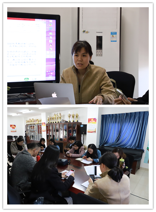 会议的开始,党支部书记刘彩凤老师组织全体党员开展集中学习,利用“学习强国”平台集中学习全国两会会议精神、习近平总书记系列重要讲话精神,大家就学习内容和平时在“学习强国”平台学习的心得展开交流。