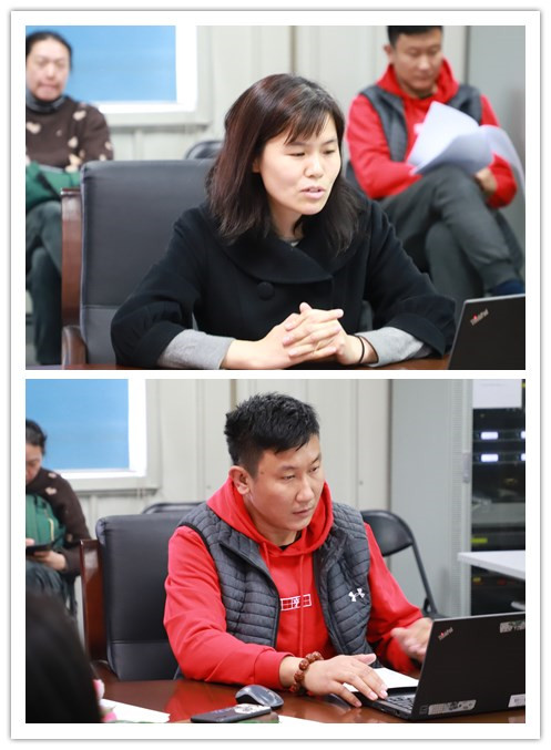 首先,林书记介绍本次考核会的召开背景,不同于以往的支部书记考核,本次述职考核工作和支部测评工作一并开展,述职评议考核小组除了党总支委员外,还吸纳了教工党员代表、群众代表、青年教师代表和学生代表,从不同群体的角度考察党支部在服务师生群众方面的工作成效。专业课教工党支部书记刘彩凤同志就工作职责、组织建设、支部作用发挥、支部活动记录、党员教育和管理以及工作要点等方面进行述职。她认为今后工作的方向是:创新活动内容与形式,提高党员活动参与率;进一步加强党支部成员之间的沟通;加强支部工作与专业建设之间的关联。然后,公体课教工党支部书记杨海林同志就履职主要情况和特点、开展工作情况、存在的主要问题和加强和改进工作的思路措施四方面总结了过去一年的工作。他重点介绍了支部开展的学习培训和实践活动,最后表达了自己今后不断努力提升工作水平更好为大家服务的决心。
