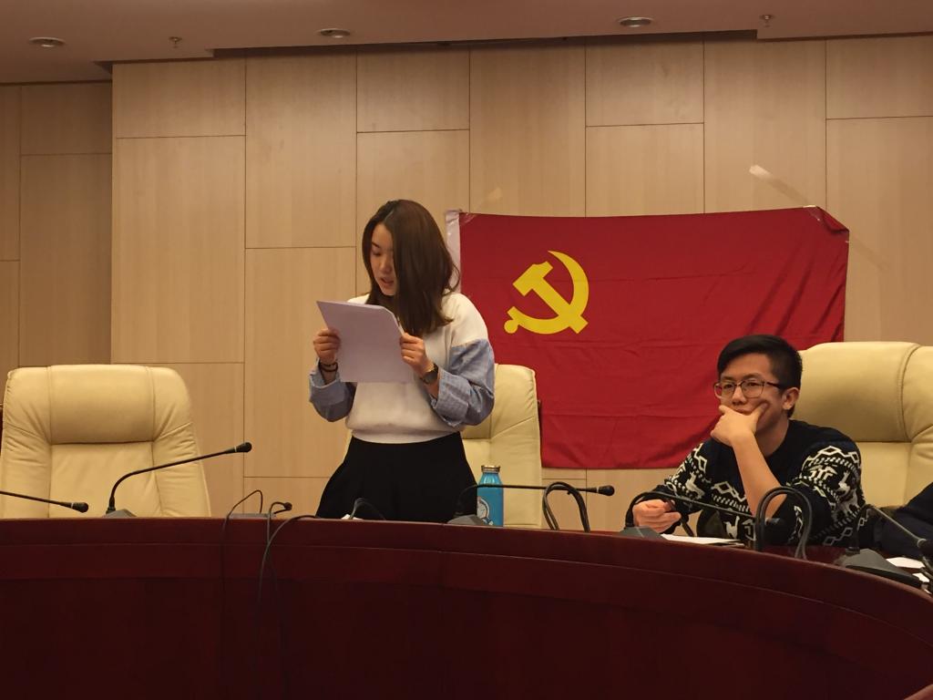 11月19日下午2点,第一学生党支部书记李秋月在学院南路校区学术会堂606会议室主持召开了党的十九大精神专题学习会,再次就党的十九大报告进行集体学习。此次会议共分为讨论高玉颖同志转为正式党员、深入学习党的十九大报告和学习交流心得体会三个环节。会上大家广泛发言,做到了说体会、讲心得、谈打算。