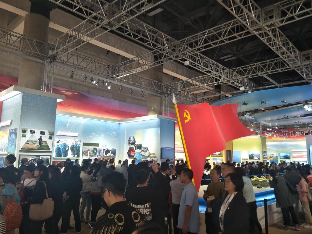 一切源于科技,一切始于创新,师生们深切的感受到科技可以描绘中国梦,给未来的生活带来神奇的变化;在强军筑梦方面,“雪龙号”破冰啸骨,“蛟龙号”潜龙腾渊;“复兴号”纵横南北,“北斗导航”俯瞰世界;陆海空三军严阵以待,航空设备剑指九天。国之利器护卫中华稳定,炎黄子孙倚靠中华江山。同学们置身其中,感受到了祖国的强大。在文化自信方面,无论是诉语相倾的图书、新融媒体的魅力,还是数字故宫互动平台,都让同学们纷纷驻足,无不为之赞叹。看着祖国的文化遍布全球,受海外人民的欣赏与欢迎,一股民族自豪感油然而生。每个展区各有特色,但无不体现着中华民族的伟大复兴,身为华夏儿女,每位同学都深深的为祖国感到骄傲。