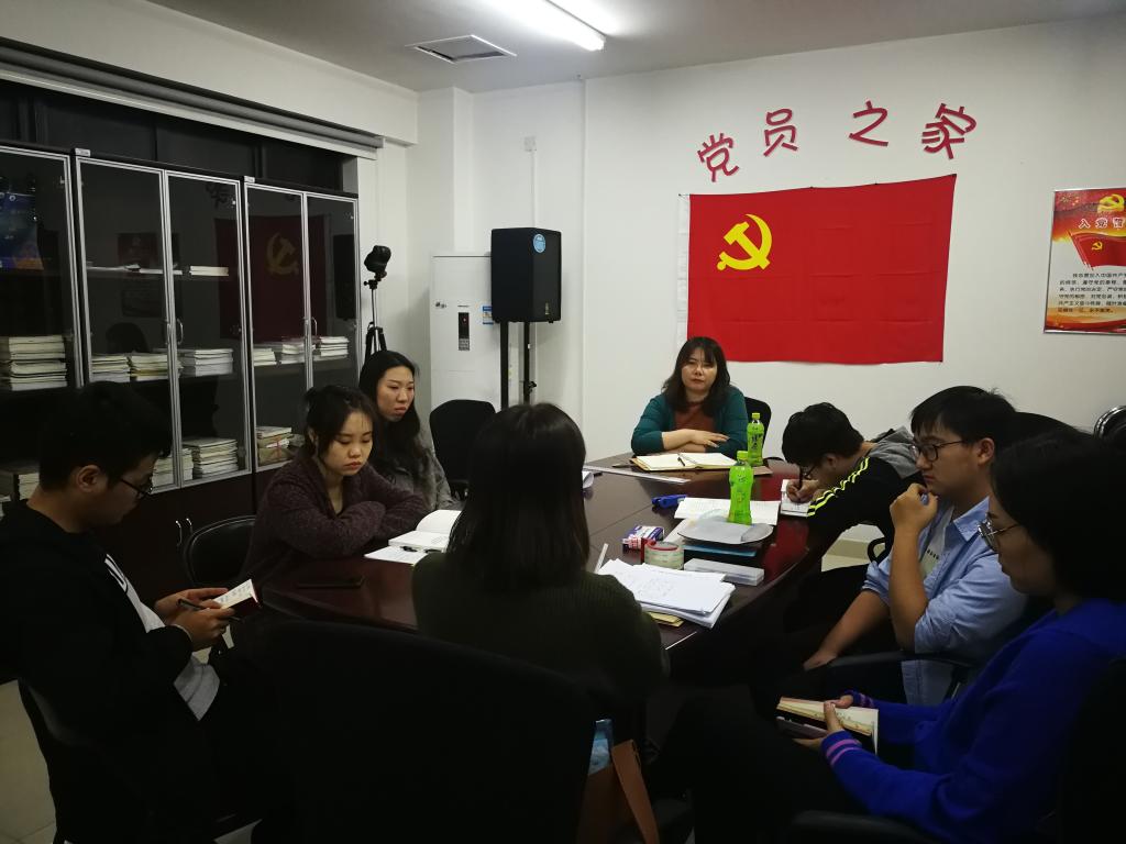 10月23日晚7点,新葡萄官网第一学生党支部于看台教室开展优秀党员事迹学习会议。支部成员在书记李秋月老师的带领下,对2017-2019年度中央财经大学优秀共产党员标兵、优秀共产党员胡庆同志的典型事迹进行了学习、交流和讨论。作为“不忘初心、牢记使命”系列教育活动的重要活动之一,同学们通过对身边先进党员事迹的学习,坚决落实“守初心、担使命、找差距、抓落实”中的“找差距”一环,将先进党员光荣事迹作为自身养料,提升自身思想政治素养。