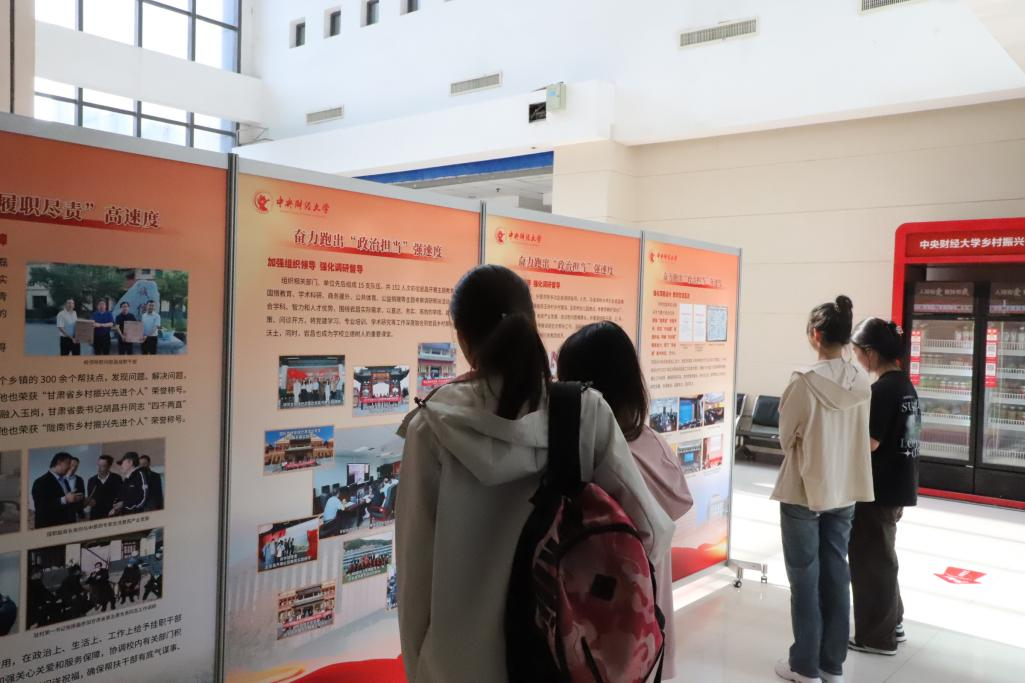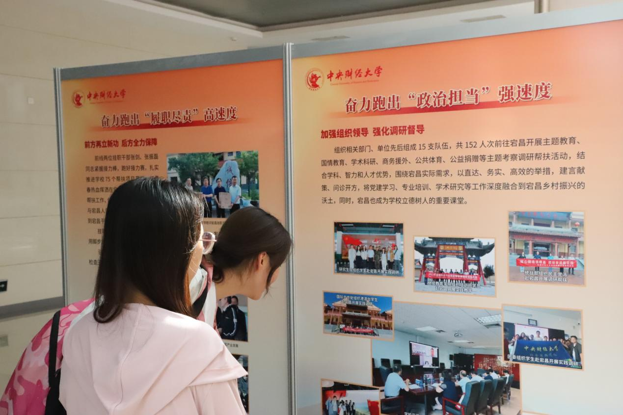 2024年5月8日下午,新葡萄官网amg研究生党支部与本科生党支部集中前往主教学楼参观“中央财经大学助力甘肃宕昌乡村振兴纪实展《奋进》”。
