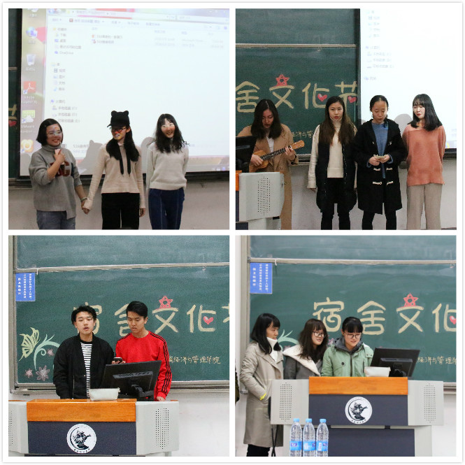 学院学生会生活部在宿舍文化节活动期间定期安排工作人员进行宿舍卫生安全检查,并将检查结果算术平均作为优秀宿舍考核指标得分之一。展示活动当日,各个学生宿舍从“宿舍PPT介绍”、“宿舍视频展示”和“现场才艺表演”三个部分对宿舍建设成果进行展示。学院党总支书记林琼老师,2017级1班班主任陈琦文老师,学生工作办公室李秋月老师、张振磊老师、胡庆老师,学生会主席团陈逸洲同学、杨莹昱同学,2017级班级工作助理马枢佳同学、曾伟同学等应邀作为评委出席。