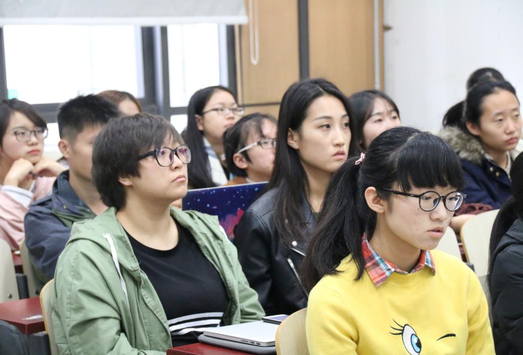 随后,王佳妮同学就“保研干货与大学湿货”进行经验分享。她分享了一些保研资料、自身经历,为在做同学阐述了自己的学习方法,介绍课程类型及所需能力,同时向大家说明了基础知识、逻辑分析和开拓视野的重要性。王佳妮同学鼓励学弟学妹们要多多关注学术期刊,积极参与学术科研,鼓励大家要突破迷茫,努力调整自身心态,积极适应大学生活节奏。