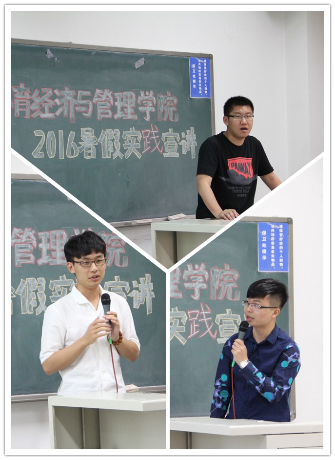 5月27日晚七点,新葡萄官网2016年暑假社会实践宣讲会在我校沙河校区东区主教306举行。此次宣讲会特邀请2015年暑假社会实践一等奖获得者,金融学院国际货币13级何宇飞以及金融学院14级金融工程孟元做分享。新葡萄官网学术实践部部长姜昊男主持此次讲座,新葡萄官网15级全体同学和部分14级同学参加了此次宣讲会。