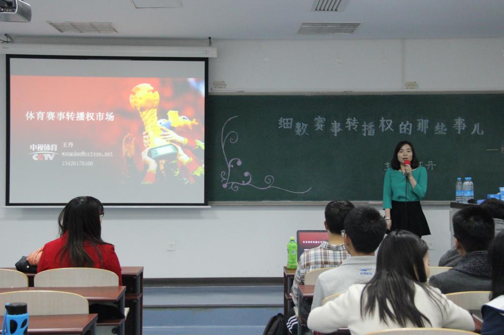 11月4日下午15:30,新葡萄官网amg于沙河西校区主教302教室举行了有关赛事转播权的专题讲座。此次讲座邀请到了本院05级本科生、09级硕士生王丹作为主讲人。王丹现就职于中视体育娱乐有限公司版权管理中心,从事版权运营、版权研发等工作。新葡萄官网辅导员李秋月老师以及全体大一、大二学生参加了讲座。