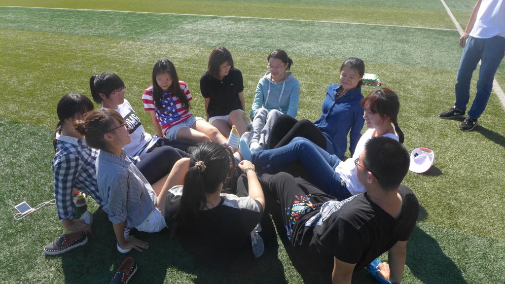 第一个游戏名叫“串名字”,同学们首先围成一个圈,分别进行自我介绍,然后进行串名字。这个游戏使得队伍成员互相认识,并考验大家的记忆力和反应力。第二个游戏叫“同舟共济”,一开始按照队伍人数分发相同数目的垫子让小组成员站在垫子上,确定的标准是所有人所有身体部位不接触垫子外的地方并坚持5秒钟,第二轮由培训师撤走两个垫子,还是同样的规则站在垫子上。这个游戏增强了团队感情,发掘了小组成员创新精神。后面的游戏还有“驿站传书”和“环环相传”,同样也是考验队友之间的默契和协调配合能力。活动最后,第一组的同学以最高的积分成为第一名,每个同学得到了一张印有学校校徽的明信片作为奖品。