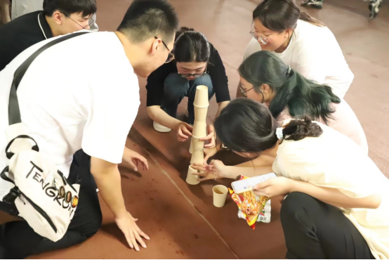 随后,活动进入了高潮部分——富有趣味性和互动性的游戏环节。参与者被分成多个小组,分别参与了“团团抱”、“我记得你”以及“建立最高塔”等游戏。这些游戏不仅考验了同学们的团队协作能力和策略思维,更在欢声笑语中增进了彼此间的友谊和默契。新老同学在游戏中积极互动,共同面对挑战,展现了体经学院学子团结协作、积极向上的精神风貌。