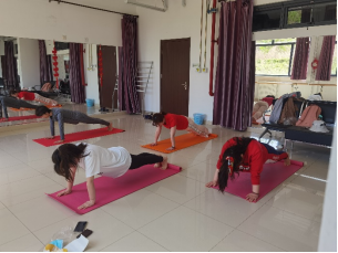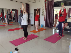 锻炼活动第一部分是热身运动,自头、颈、肩、胸、腰腹及下肢各部位的活动和拉伸开始,待老师们体温升高,各身体部位活动开后,进入第二部分自重力量训练。自重力量训练主要是针对女教工们普遍存在的伏案久坐的工作特点,重点针对上肢及肩带、胸、腹、臀、腿等部位安排了练习。最后,安排了瑜伽的拉伸体式锻炼。锻炼后,老师们都表示身体各部位得到了舒展,局部的肌肉得到了锻炼,在很大程度上缓解了伏案久坐工作带来的身体不适症状。