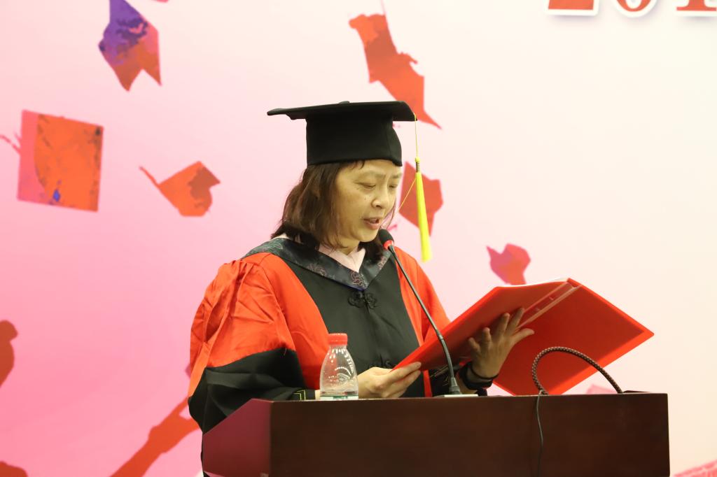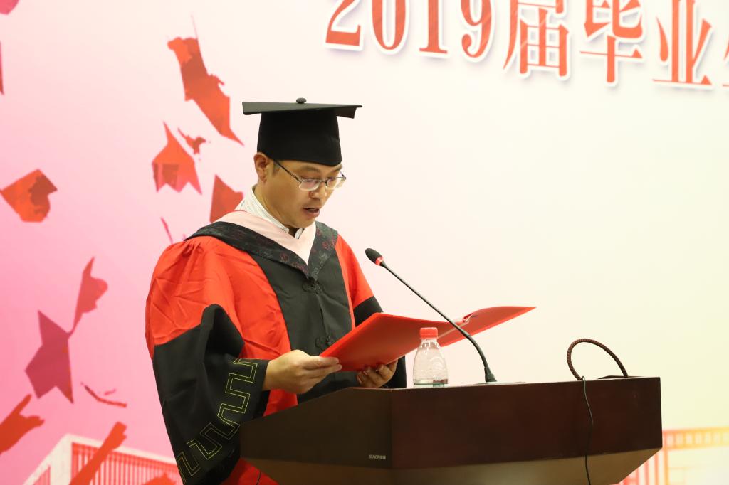 毕业典礼结束后,学院举行了隆重的学位授予仪式,张本家副院长为毕业生颁发了毕业证书和学位证书并拨穗,由王裕雄副院长宣读2019届学位授予名单。